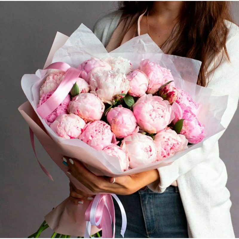 21 пион, зелень, упаковка. Цвет пионов может быть другой.