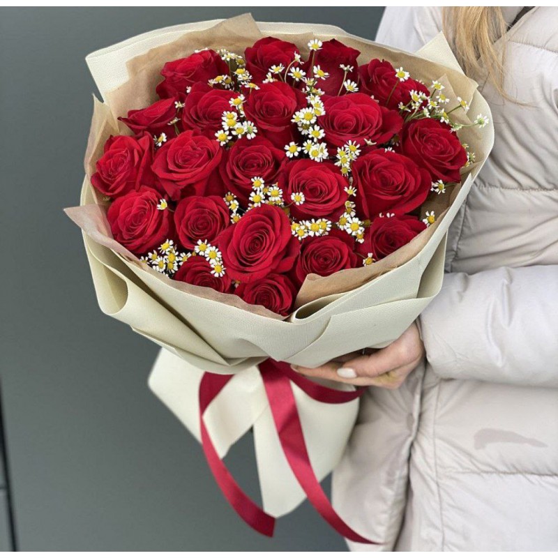 Теги: Розы с ромашкой, розы, танацетум, упаковка