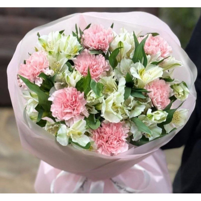 диантусы 7шт, альстромерия 6шт, дизайнерская упаковка 3шт